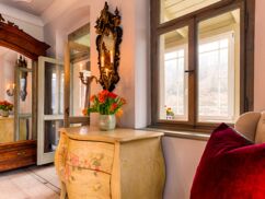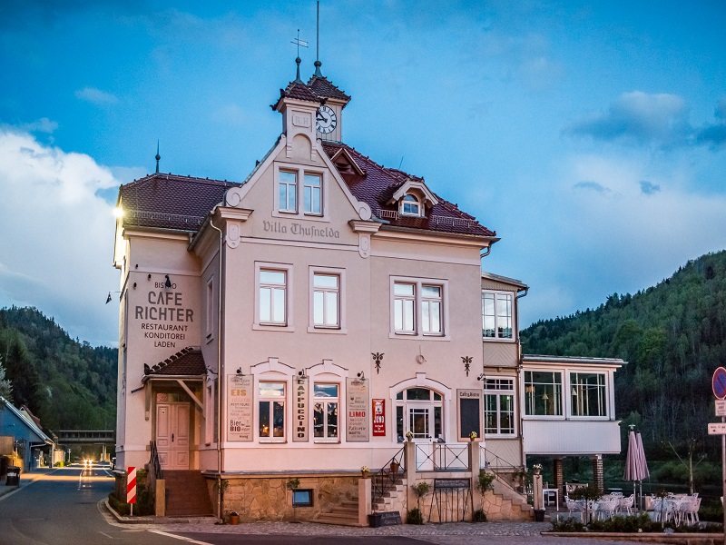 Die Villa Thusnelda befindet sich direkt an der Elbe unterhalb des historischen Ortskerns von Schmilka, gelegen im Herzen des Nationalparks Sächsisch-Böhmische Schweiz. Umgeben von Wäldern und Felsmassiven des Elbsandsteingebirges, drängen sich hier kleine Fachwerkhäuschen den Berg hinauf zur historischen Mühle, am Ufer der Elbe reihen sich Hotels und Pensionen. Es wundert nicht, dass dieser Ort mit dem Prädikat „Schönstes Dorf Sachsens“ bedacht wurde. Dieses Kleinod zwischen Dorfkultur und Natur muss man einfach erlebt haben.