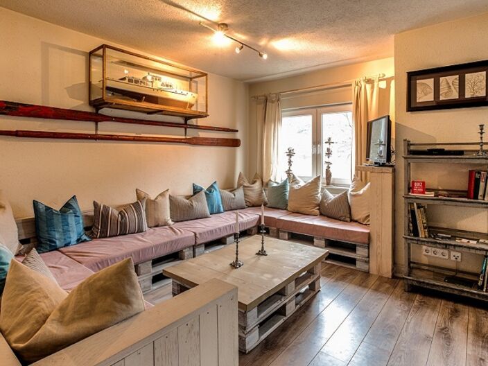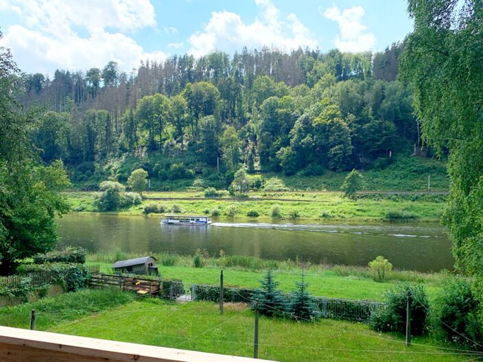Gemütliches Ferienhaus mit Retrocharme, ideal für Familien, direkt an der Elbe gelegen, mit eigenem Garten und großer Liegewiese. Im Obergeschoss befinden sich 2 Schlafzimmer mit Balkon und Panoramablick auf Elbe und Schrammsteine sowie Dusche und WC. Küche und Wohnzimmer mit Zugang zu kleiner Terrasse und Garten sowie ein Gäste-WC befinden sich mit einem separatem Eingang im Erdgeschoss. Parkplatz am Haus.